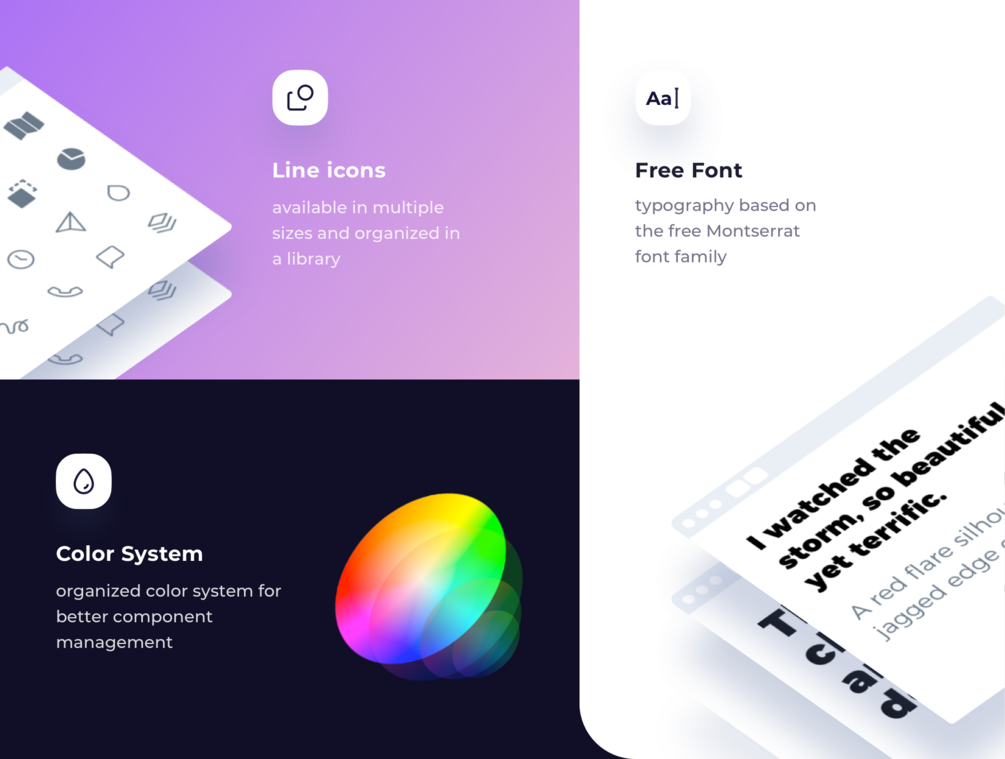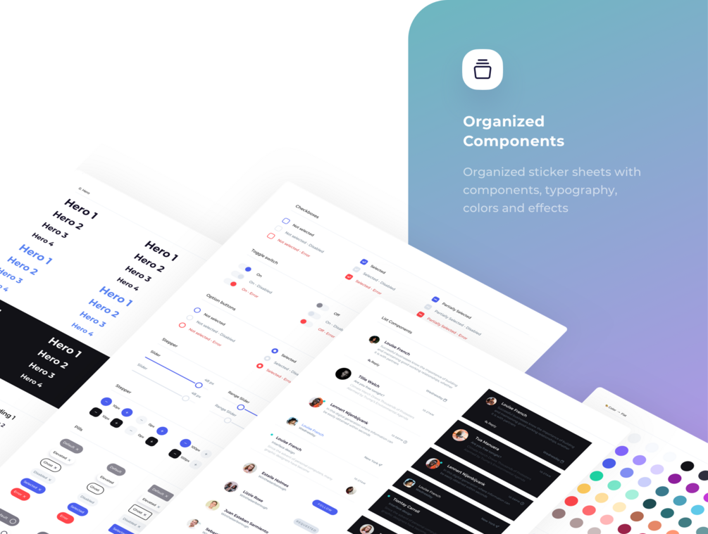 - Icons & Spot illustrations library organized and easily customizable in external libraries